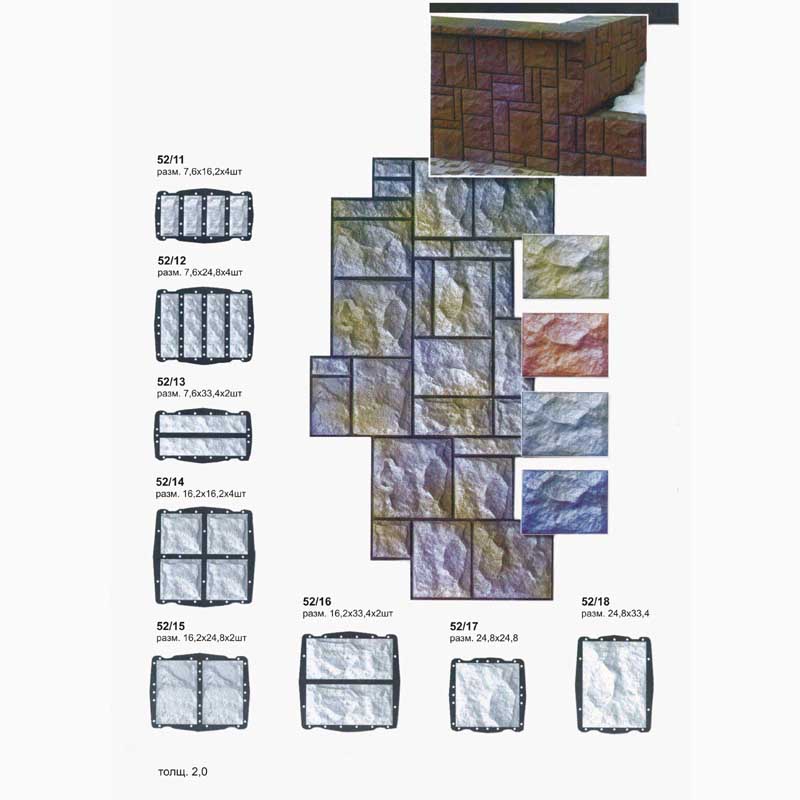 Форма тротуарной плитки 52/9 Форма тротуарной плитки 52/1, 52/2, 52/3, 52/4, 52/5, 52/6, 52/7 Форма тротуарной плитки 52/11